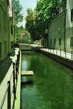 The Memminger Ach is a tributary of the Iller, part of the Danube river system and forms an important part of the landscape in the town of Memmingen. The river is 19.2 km (11.9 mi) long (36.0 km (22.4 mi) including its source river Kressenbach). It flows into the Iller near Pleß.