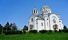 Temple of Saint Dimitrije is a church with the charnel-house in Lazarevac, built in the glory of soldiers of Serbian and Austro-Hungarian army who were killed in Battle of Kolubara.[1][2] The architectural and urban ambience of Lazarevac, city with quite a short past, hosts this temple which is, besides its high silhouette values, significant for its religious and social function. It is a notable realization of the interwar Serbian church architecture, but also the Russian builders who immigrated to Serbia because of the civil war in their homeland.