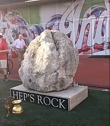 In 2005, head football coach Terry Hoeppner had a southern Indiana limestone boulder, nicknamed "The Rock", installed in the north end zone as a new campus tradition. This limestone boulder was found prior to Hoeppner's first season at IU in the practice field. It was removed, put on a granite slab and moved to the stadium. The Hoosiers and coach Hoeppner walked out and touched the Rock before running onto the field at every home game during Hoeppner's time as head coach (a tradition that continues today). Terry Hoeppner died of brain cancer on June 19, 2007,[9] and The Rock (renamed "Hep's Rock" during a ceremony with the Hoeppner family on November 6, 2010) now serves as motivation for the team as well as a tribute to Hoeppner's influence on the football program.