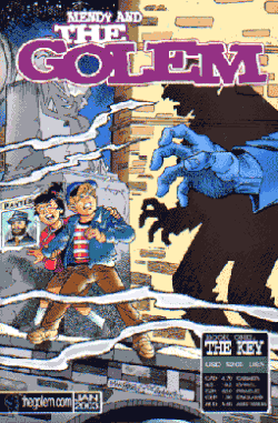 Billed as "The World's Only Kosher Comic Book", Mendy Enterprises' Mendy and the Golem first appeared in 1981. Written by Leibel Estrin and drawn by Dovid Sears, the comic book featured the offbeat misadventures of Mendy, an Orthodox Jewish boy, and his pet Golem. Other characters include Mendy's parents, Rabbi Yaakov and Sara Klein; Mendy's sister, Rivky; and a host of colorful supporting characters such as Moshe the Mayven; the Lone Stranger and his faithful friend Toronto; Captain Video; Dr. Hardheart and his evil robot Oy Vayder; and Professor Nemo.