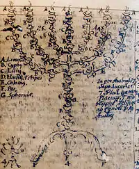 Kevin Conner has noted of the original menorah, described in Exodus 25, that each of the six tributary branches coming out of the main shaft was decorated with three sets of "cups... shaped like almond blossoms... a bulb and a flower..." (Exodus 25:33, NASB).[30] This would create three sets of three units on each branch, a total of nine units per branch. The main shaft, however, had four sets of blossoms, bulbs and flowers, making a total of twelve units on the shaft (Exodus 25:34). This would create a total of 66 units, which Conner claims is a picture of the Protestant canon of scripture (containing 66 books). Moreover, Conner notes that the total decorative units on the shaft and three branches equate to 39 (the number of Old Testament books within Protestant versions of the Bible); and the units on the remaining three branches come to 27 (the number of New Testament books).[31] Conner connects this to Bible passages that speak of God's word as a light or lamp (e.g. Psalms 119:105; Psalms 119:130; cf. Proverbs 6:23).[32]
