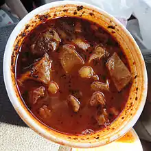 | Main ingredients | Beef tripe (cow stomach), broth, hominy, lime, onions, cilantro, oregano, red chili peppers |
