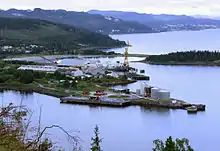 Meråker saw an industrial boom due to the railway. There was already a copper mine and smelters at Kopperå, and they saw the railway as a possibility to change from locally produced charcoal to imported coke. A pulp mill opened in 1887, but burned down in 1912. The most important industry was the carbide factory that opened in Kopperå in 1900—Meraker Smelteverk. Though located close to the hydroelectricity sources in Meråker, the import and export of raw and finished materials would not have been possible without the railway.[18] A port for the plant was built at Muruvik in 1918.[14]