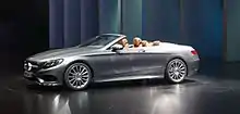 The convertible version of the S-Class (codenamed A217), which was unveiled at the International Motor Show Germany in 2015, has many lightweight reinforcements such that its driving style is similar to that of the coupé version. Safety is maintained by a roll-over system, which is pyrotechnically actuated behind the rear passengers if required.[12] It is the first luxury 4-seater open Mercedes since 1971[13] and first 4-seater open Mercedes with an engine larger than 3-litres since the W111 280SE 3.5 (1969-1971).