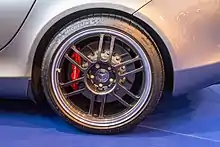 The SLR features Sensotronic Brake Control, a type of brake-by-wire system.[5] The brake discs are carbon-ceramic units and provide better stopping power and fade resistance than steel discs when operating under ideal working temperature. Mercedes-Benz claims these discs are fade resistant to 1,200 °C (2,200 °F). The front discs are internally vented and measure 370 mm (14.6 in) in diameter; eight-piston callipers are used. Rear discs are 360 mm (14.2 in) in diameter with four-piston callipers. During wet conditions the callipers automatically skim the surface of the discs to keep them dry.
