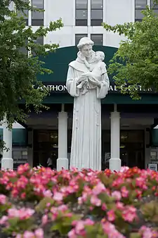 ![]() A statue of St. Anthony of Padua at the hospital's entrance | |