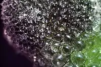 The plant usually uses C3 carbon fixation, but when it becomes water- or salt-stressed, it is able to switch to Crassulacean acid metabolism.[3] Like many salt-tolerant plants, M. crystallinum accumulates salt throughout its life, in a gradient from the roots to the shoots, with the highest concentration stored in epidermal bladder cells. The salt is released by leaching once the plant dies. This results in a detrimental osmotic environment preventing the growth of other, non-salt-tolerant species while allowing M. crystallinum seeds to germinate.[2]