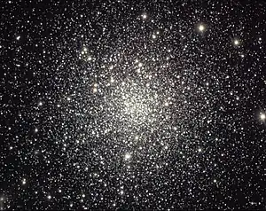 Messier 12 or M 12 (also designated NGC 6218) is a globular cluster in the constellation of Ophiuchus. It was discovered by the French astronomer Charles Messier on May 30, 1764, who described it as a "nebula without stars".[7] In dark conditions this cluster can be faintly seen with a pair of binoculars. Resolving the stellar components requires a telescope with an aperture of 8 in (20 cm) or greater.[8] In a 10 in (25 cm) scope, the granular core shows a diameter of 3′ (arcminutes) surrounded by a 10′ halo of stars.[7]