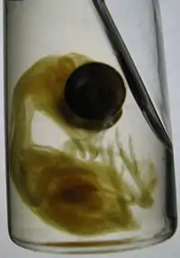 Methyl salicylate is also used as a bait for attracting male orchid bees for study, which apparently gather the chemical to synthesize pheromones,[20] and to clear plant or animal tissue samples of color, and as such is useful for microscopy and immunohistochemistry when excess pigments obscure structures or block light in the tissue being examined. This clearing generally only takes a few minutes, but the tissue must first be dehydrated in alcohol.[21] It has also been discovered that methyl salicylate works as a kairomone that attracts some insects, such as the spotted lanternfly.[22]