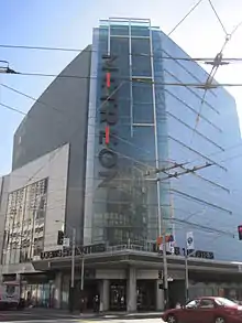 The Metreon is a shopping center located in downtown San Francisco, California, United States at the corner of 4th Street and Mission Street. It is a four-story 350,000 sq ft (33,000 m2) building built over the corner of the underground Moscone Center convention center. Metreon opened on June 16, 1999, as the first of a proposed chain of Sony "urban entertainment centers", aggregating dining, games, music, exhibitions, shopping, and movies. Sony intended the ambitious 85 million dollar project to be not only a theme park and gallery for Sony products but also a way to reinforce a sophisticated image for the Sony brand.