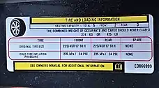 - "49 CFR 571.110 – Tire selection and rims and motor home/recreation vehicle trailer load carrying capacity information for motor vehicles with a GVWR of 4,536 kilograms (10,000 pounds) or less". United States Department of Transportation Regulations. S4.3 (a) – via Cornell Law School Regulation References.