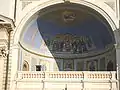 Gheorghe Tattarescu painted the icons and decorative elements in a style that respected Orthodox norms but also showed a Renaissance influence. The four Biblical scenes above the central nave, the saints' faces and the decorative compositions all show an Italian neo-classical rigor, to which the artist had been exposed during his studies at Rome's Accademia di San Luca. This creates harmony between the painting and the architectural style.[4] The stained glass was worked in Munich and redone after World War II, under Metropolitan Justinian Marina.[8] Two valuable icons painted in the 16th century are kept inside; they depict Christ Pantocrator and the Madonna and Child.[2]