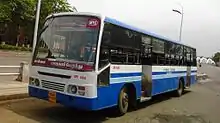 The Metropolitan Transport Corporation (formerly known as Pallavan Transport Corporation), sometimes known as the MTC or PTC, is the agency that operates the public bus service in Chennai, India. As of May 2017, the MTC had a scheduled fleet of 3688 buses and total fleet strength of 3968 buses, on a daily basis carries 6.0 million passengers to and from, which is half the population of Chennai. On March 22, 2016, the Union Transport Ministry reported that Chennai had the most crowded buses in the country with 1300 passengers per bus in each direction per day. During peak hours, in some routes, a bus with capacity to accommodate 80 persons carries twice the number of people due to the extensiveness of the system. It has an operating area of 3,929 square kilometres (1,517 sq mi).[1] MTC has a total of 830 routes with its largest terminus being Broadway in Central Chennai.