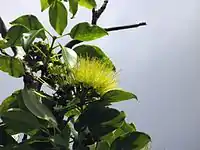 Metrosideros macropus, the lehua mamo or 'ohi'a, is a species of tree in the eucalyptus family, Myrtaceae. It is endemic to the island of Oʻahu in the Hawaiian Islands. It is closely related to the widespread and highly variable ʻōhiʻa lehua (M. polymorpha), found throughout the islands. Lehua mamo, however, is only found in the Koʻolau mountains. It is distinguished from M. polymorpha by the elongate leaf petioles (1/3-1/2 as long as the leaf blades, compared to less than 1/4 as long in M. polymorpha) and the flowers are usually yellow. The latter character is also found in some varieties of M. polymorpha, which normally has red flowers, but occasionally the flowers of M. macropus are red as well.