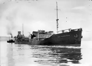 Eagle Oil and Shipping was registered in the United Kingdom. Therefore, after 1938 although the Mexican government had nationalised Mexican Eagle Petroleum, Eagle Oil and Shipping remained a subsidiary of Royal Dutch Shell. After 1938 the fleet continued to carry oil from the Gulf of Mexico to the UK.[23] During the Second World War the company played an important role in supplying petroleum and petroleum products to the United Kingdom. Oil tankers were a particular target in Germany's economic warfare against the UK. Enemy action sank 17 Eagle Oil's ships and killed at least 206 officers, men and DEMS gunners serving aboard them.