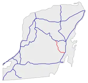 Federal Highway 293 (Carretera Federal 293) is a Federal Highway of Mexico, located entirely within Quintana Roo. It connects Mexican Federal Highway 184 at Polyuc to Mexican Federal Highway 307 near Pedro Antonio Santos.[2]