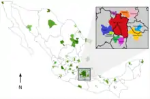 The Mexico City megalopolis, also known as the Megalopolis of Central Mexico (Spanish: Corona regional del centro de México), is a megalopolis containing Greater Mexico City and surrounding metropolitan areas.[1]