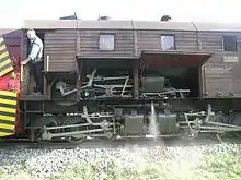 No wheels are rigidly affixed to the boiler; all are mounted on bogies placed directly under the boiler/cab unit (comparable with a modern diesel or electric locomotive). This compares with a Mallet, where the rear set of wheels are attached to the frame, and only the front set swivels as a bogie. Therefore, boiler overhang is less than that of the Mallet locomotive on a curve of the same radius. Meyers are usually set up as a tank engine, with the boiler/cab unit carrying the water and fuel supplies.