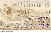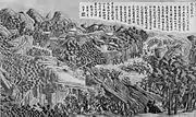 Hunan was the main area of fighting, with some taking place in Guizhou. The Qing dynasty sent banner troops, Green Standard battalions and mobilized local militias and self-defence units. The lands of rebellious Miao were confiscated, to punish them and to increase the power of state; this action, however, provoked further conflicts, because new Han landowners ruthlessly exploited their Miao tenants. On the pacified territories forts and military colonies were set up, and Miao and Chinese territories were separated by the wall with watchtowers. Still, it took eleven years to finally quell the rebellion.[2] Relocating Green Standard troops from Hubei to Hunan in 1795, to deal with the Miao, facilitated the White Lotus Rebellion, because of the diminished control in the northern province.[5]
