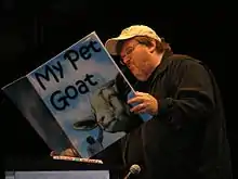 Moore has written and co-written eight non-fiction books, mostly on similar subject matter to his documentaries. Stupid White Men (2001) is ostensibly a critique of American domestic and foreign policy but, by Moore's own admission, is also "a book of political humor".[65] Dude, Where's My Country? (2003), is an examination of the Bush family's relationships with Saudi royalty, the Bin Laden family, and the energy industry, and a call-to-action for liberals in the 2004 election. Several of his works have made bestseller lists.[66]