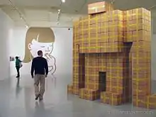 Michael Salter (born 1967)[2] is an American contemporary artist and educator.[3] Salter works in a variety of media, including drawing, painting, digital art, animation, kinetic sculpture,[4][5] and sculptural assemblage.[6] His work often references and subverts the visual language of corporate branding and graphic design,[5] and reflects his desire to, in his words: "sort out the cacophony of visual noise in order to rethink meaning, motive, perception and narrative."[7] His work has been described as postmodern, whimsical,[8] quirky, unsettling,[6] cryptic,[4] and thought-provoking.[5] Salter is perhaps best known for his giant Styrobots - a series of site-specific installations which rise ceiling-high to dominate their space.[5]