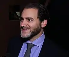 In the third season of the crime anthology television series Fargo, Stuhlbarg played Sy Feltz, loyal and dedicated business partner to Ewan McGregor's character Emmit Stussy. The season premiered in April 2017.[56] In November, Stuhlbarg co-starred as Samuel Perlman, an archaeology professor, whose son Elio (played by Timothée Chalamet) develops a relationship with his father's assistant (played by Armie Hammer), in the romantic drama Call Me by Your Name. Stuhlbarg was moved by Perlman's "sense of generosity and love and understanding" and director Luca Guadagnino said he cast Stuhlbarg because he wanted "someone who could carry a sort of softness and warmth and at the same time communicate a great knowledge and great culture".[57][58] Perlman's consoling speech given to his son in the film was described by Huffington Post writer Nell Minow as being "one of the most moving scenes ever filmed."[59] For Guillermo del Toro's fantasy drama The Shape of Water, released in December, Stuhlbarg was required to speak Russian to play Dr. Robert Hoffstetler, a Soviet spy.[60] His final performance of 2017 and second release of December, was as The New York Times executive editor A. M. Rosenthal, in Steven Spielberg's political thriller The Post, which starred Tom Hanks and Meryl Streep and depicts the publishing of the Pentagon Papers by journalists from The Washington Post and The Times.[59] With his performances in Call Me By Your Name, The Shape of Water, and The Post, he became the sixth actor to appear in three films nominated for the Academy Award for Best Picture in the same year.[61][62]