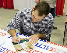 Michael Wacha was born in Iowa City, Iowa, to Tom and Karen Wacha as the second of four children. He has one older brother, Charlie, one younger brother, Lucas and a younger sister, Brette.[1] He grew up a Chicago Cubs fan.[2] When Wacha was three years old, his family moved from Iowa City to Texarkana, Texas. His future college coach, Rob Childress, first spotted Wacha pitching in an American Legion game; Wacha's father was the coach and his sister the batgirl.[3] Wacha's uncle, Dusty Rogers, pitched in the Cincinnati Reds organization from 1984 through 1988.[1][4]