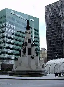 The Michigan Soldiers' and Sailors' Monument is a Civil War monument located in Downtown Detroit, Michigan. This example of civic sculpture stands in a prominent location on the southeast tip of Campus Martius Park, where five principal thoroughfares—Michigan Avenue, Monroe Street, Cadillac Square, Fort Street, and Woodward Avenue—convene on the reconstructed traffic circle in front of One Campus Martius Building. It was listed on the National Register of Historic Places in 1984.[1]