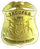 The department was founded in 1917 as a wartime constabulary and eventually evolved into the modern agency that it is today. The department's entry-level members are called "Troopers". Its headquarters is in Dimondale, Michigan.[3]
