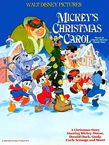 Mickey's Christmas Carol is a 1983 American animated comedy-drama featurette directed and produced by Burny Mattinson. The cartoon is an adaptation of Charles Dickens's 1843 novella A Christmas Carol, and stars Scrooge McDuck as Ebenezer Scrooge. Many other Disney characters, primarily from the Mickey Mouse universe, as well as Jiminy Cricket from Pinocchio (1940), and characters from Robin Hood (1973) and The Adventures of Ichabod and Mr. Toad (1949), were cast throughout the film. The film was produced by Walt Disney Pictures and released by Buena Vista Distribution. In the United States, it was first aired on television on NBC, on December 10, 1984.[1]