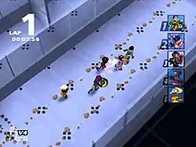 - In Versus mode, 1-8 players have to make the other opponents disappear off the screen by running as far in front as possible to score points. The player who either fills up their points gauge, passes the finish line on the final lap with the most points, or the last person standing in Play-Off (a Sudden Death mode activated if players have the same number of points upon crossing the finish line on the last lap) . Players are defined in 8 colors. There are 3 Vs. modes: