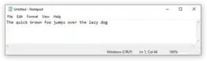 Up to Windows Me, there were almost no keyboard shortcuts and no line-counting feature. Starting with Windows 2000, shortcuts for common tasks like new, open and save were added, as well as a status-bar with a line counter (available only when word-wrap is disabled).