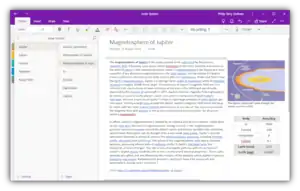 Microsoft OneNote is a note-taking program for free-form information gathering and multi-user collaboration. It gathers users' notes, drawings, screen clippings, and audio commentaries. Notes can be shared with other OneNote users over the Internet or a network. OneNote is available as part of the Microsoft Office suite,[7] it is also available as a free, standalone app via the official website, the app stores of Windows 10, macOS, iOS and Android.[8] Microsoft also provides a web-based version of OneNote as part of OneDrive and Office for the web.