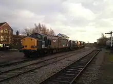 The original Dereham station was re-opened to passengers on Saturday 26 July 1997, with the first services being operated by 1890-built Manning Wardle 0-6-0T 'Sir Berkeley', hired from the Keighley and Worth Valley Railway.[46] British Railways Board (Residuary) Limited transferred the line between Wymondham and Dereham to the MNRPT on 23 September 1997.[47][48] The first preservation-era train to operate between Dereham and Wymondham ran on 8 February 1998, when a works train hauled by 20069 and Ruston & Hornsby 0-4-0 'County School ran as part of preparations for a March freight test train.[49] The first commercial freight train operated on 8 July 1998.[50]