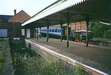 The passenger service between Dereham and Wells ended on 5 October 1964.[20] Dereham became an intermediate station for Norwich to King's Lynn services. In June 1965, the Wymondham to Dereham section was reduced to single track with a passing loop at Hardingham. The passenger service from King's Lynn ended on 9 September 1968,[21] with the Midland & Great Northern Joint Railway Society operating the 'East Anglian Branch Line Farewell' DMU special on the final Saturday.[22] The withdrawal of the remaining passenger services, between Wymondham and Dereham, followed in October 1969.[23]