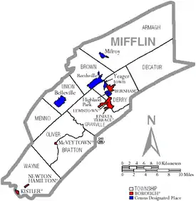 The population ranking of the following table is based on the 2010 census of Mifflin County.[16]