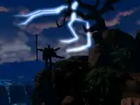 The change of setting established a formal connection between the two series, and successive Might and Magic games continued the Heroes storyline, though with overt connections to the original series such as many references to the Ancients and the presence of a town named New Sorpigal, in reference to the first game's starting town. These were built upon in Might and Magic VII and VIII, which featured several characters from the first five games. The story is set ten years after Heroes of Might and Magic II, and occurs in tandem with the events of Heroes of Might and Magic III: The Restoration of Erathia.[12] The game was first announced with a press release at E3 of April 1998, described by series creator Jon Van Caneghem, who led development, as "the best Might and Magic that I have ever made" and "by far the largest and most ambitious game in the history of role playing games" with more than a thousand miles of virtual terrain.[10] An architect was reportedly involved with designing the gameworld's structures and dungeons, and two graphic engines named Horizon and Labyrinth were used in the creation of the game's environments.[10][13] In Might and Magic VI larger objects like buildings, dungeons and the landscape are in 3D. Smaller objects like trees, humans and creatures are 2-dimensional sprites. The sprites were pre-rendered 3D images in 3DS Max and Character Studio.[14][15][16] It was the first in the series to feature full motion video cinematics. The game's soundtrack was composed by Steve Baca, Rob King, Paul Romero and Jennifer Wang – Baca, King and Romero had previously composed music for Heroes of Might and Magic.[17]
