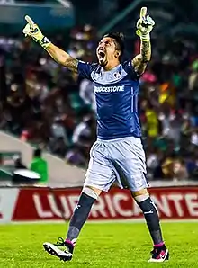 Miguel Angel Fraga Licona (born September 3, 1987) is a Mexican football goalkeeper for Correcaminos.[1] Fraga played many years as a backup in Monarcas Morelia to then become the star of Toros Neza after stopping many penalties against 1st division clubs in the Mexican cup. who also was call up for the 2017 gold cup and the 3rd choice goalkeeper.