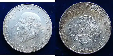Commemorative silver coin Mexico 10 Pesos 1955