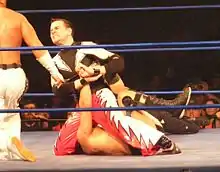 Quackenbush began taking bookings for multiple local independent companies, including PCW and SCW in late 1998. Growing up, Quackenbush idolized Japanese professional wrestler Jushin Thunder Liger and adopted the nickname "Lightning" in tribute to him.[7] Entering the business untrained, Quackenbush received training from wrestler Ace Darling, who took Quackenbush in as his protege. In 1999, he was ranked #128 by Pro Wrestling Illustrated in the annual PWI 500 as well as being named the June Flavour of the Month by the publication.[8] Quackenbush eventually befriended independent wrestlers Reckless Youth and Don Montoya. They began teaming together as a trio, dubbed The Black T-Shirt Squad (abbreviated to The BTS), due to all three wearing black t-shirts in their wrestling attire, by fellow wrestlers, which eventually was used as their ring name. Quackenbush started taking most bookings with his fellow stablemates opposed to performing as a singles wrestler.