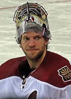 Mike Smith (born March 22, 1982) is a Canadian professional ice hockey goaltender who is currently playing for the Edmonton Oilers of the National Hockey League (NHL). He has previously played for the Dallas Stars, Tampa Bay Lightning, Arizona Coyotes, and the Calgary Flames. He is the 11th goaltender in NHL history to score a goal, which he did in the 2013–14 season against the Detroit Red Wings in Phoenix.