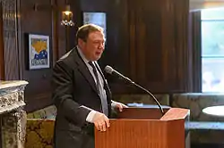 In May 2018 Fridman and Aven spoke to an off-the-record private dinner meeting at the Atlantic Council in Washington, D.C.[163][164][165][166][167] The invitation and the privacy of the meeting drew criticism of the Atlantic Council from a group of 13 Russian and U.S. experts and activists,[163][164][165][167] who wrote that "In our view ... Aven, Fridman, and other key Alfa Bank oligarchs are ... close cronies and insiders of Putin’s regime, and do not operate independently of Putin’s demands."[168] The Atlantic Council responded that the private meeting was not "a sweetheart platform",[165][169] and the Kremlin responded that the two oligarchs represented the interests of their business, not Putin's interests.[170][171]