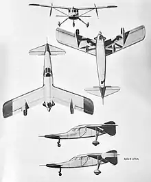 The Mikoyan-Gurevich MiG-8 Utka (Russian: Микоян и Гуревич МиГ-8 «Утка», "duck") was a Soviet experimental aircraft. Built of wood, the aircraft was designed and built in 1945 to test the novel canard configuration. It also used a tricycle undercarriage, the first used by the OKB. It was modified to test a variety of vertical stabilizer and wingtip configurations and was later used as a liaison aircraft for many years by the design bureau.