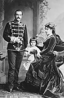 Milan married Natalie Keschko on 17 October [O.S. 5 October] 1875 at the St. Michael's Cathedral, Belgrade, Serbia.[5] Natalie, sixteen years of age, was the daughter of Bessarabian nobleman Petre Ivanovich Keschko, who served as a Colonel in Russian Imperial Army. Natalie's mother, Pulcheria, was by birth Princess Sturdza, meaning that the couple were fairly close second cousins because Milan's mother Elena and Natalie's father Petre were the children of two sisters, meaning that Milan and Natalija shared a set of great-grandparents.[3] This relation meant that their marriage had to be specifically approved by the church, namely Metropolitan Mihailo Jovanović, the Metropolitan of Belgrade, however, this wasn't done.[3]