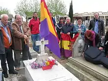 The end of the Civil War, and the victory of Francoist Spain, saw the return of traditional gender roles to Spain. This included the unacceptability of women serving in combat roles in the military.[1] After the war, many milicianas faced difficulties. This included the general population being subjected to a propaganda war that ridiculed their involvement in the conflict. At the same time, the new government sought them out to put them in prison or torture them. Many fighters were also illiterate, and found this to be restrict later activities. This was coupled with restrictions placed on some when in exile in France that limited their opportunities. For those who remained politically active, they had to deal with open sexism in the Communist Party and in anarchist circles.[1]