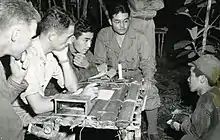 As the first MISLS class completed its training in May 1942, its students were immediately sent to the frontlines, participating in Guadalcanal to interrogate the first captured Japanese pilot.[10] At first, commanders were skeptical of the Nisei linguists. The first unit of MIS deployed under the command of Capt John Burden with the 37th Infantry Division to the Solomon Islands campaign. Upon arrival, Burden and his Nisei predictably found themselves assigned to menial tasks translating non-sensitive personal letters far from the front due to the lack of trust. After a chance meeting with Admiral Halsey, Halsey confessed to Burden that his own Caucasian interpreters only had a rudimentary understanding of Japanese and could only decipher the names of the prisoners. Burden convinced Halsey to give him a chance. Burden demonstrated the wealth of information that could be provided by a fully fluent linguist and vouched for the Nisei soldiers in his command to meet the demand. His presence proved to be instrumental in opening the eyes of the American field commanders to the value of the Nisei linguists.[4][11]