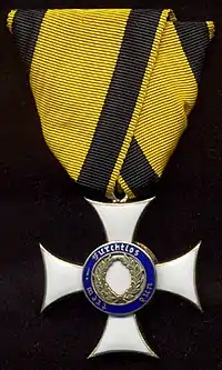 The Military Merit Order (Militärverdienstorden) was a military order of the Kingdom of Württemberg, which joined the German Empire in 1871. The order was one of the older military orders of the states of the German Empire. It was founded on February 11, 1759 by Karl Eugen, Duke of Württemberg as the Militär-Carls-Orden, and was renamed the Militärverdienstorden on November 11, 1806 by King Friedrich I. The order underwent several more revisions over the course of the 19th and early 20th centuries. It became obsolete with the fall of the Württemberg monarchy in the wake of Germany's defeat in World War I.