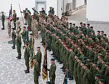 The wearing of berets of distinctive colors by elite special forces originated with the British Parachute Regiment, whose maroon beret was officially approved in July 1942,[4] followed by the Commando Forces whose green beret was approved in October of that year.[5] The United States Army Special Forces adopted a darker green beret in 1955, although it was not officially approved until 1961.[6]
