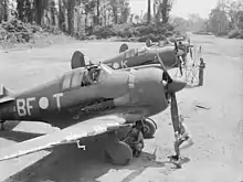 Australia played a small role in the Italian Campaign. The RAN returned to the Mediterranean between May and November 1943, when eight Bathurst-class corvette were transferred from the British Eastern Fleet to the Mediterranean Fleet to protect the invasion force during the Allied invasion of Sicily. The corvettes also escorted convoys in the western Mediterranean before returning to the Eastern Fleet.[49] No. 239 Wing and four Australian Article XV squadrons also took part in the Sicilian Campaign, flying from bases in Tunisia, Malta, North Africa and Sicily.[50] No. 239 Wing subsequently provided air support for the Allied invasion of Italy in September 1943, and moved to the mainland in the middle of that month. The two Australian fighter bomber squadrons provided close air support to the Allied armies and attacked German supply lines until the end of the war. No. 454 Squadron was also deployed to Italy from August 1944, and hundreds of Australians served in RAF units during the campaign.[51]