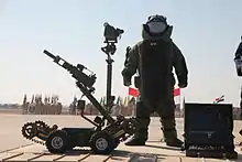 During Operation Desert Storm, US forces faced the daunting task of keeping over 500,000 American military personnel supplied in a geographically remote harsh environment with no pre-existing presence or basing arraignment.[40] This challenge was only further underscored by the logistical needs of the forces involved. A typical US armored division was composed of 350 tanks, 200 Bradley fighting vehicles and 16,000 soldiers. Together their daily supply requirement could amount to 5,000 tons of ammunition, 555,000 gallons of fuel, 300,000 gallons of water, and 80,000 meals. To meet these needs the division was equipped with nearly a thousand trucks carrying cargo, fuel and ammunition, and 3,500 of the division's soldiers had logistical responsibilities. Despite these resources though, the division could only sustain itself for three to five days before requiring resupply from an external source.[41] Likewise, a typical squadron of 24 fighter aircraft would require the equivalent of 20 C-141 Starlifters carrying supplies to support its initial deployment and operational capability.[42]
